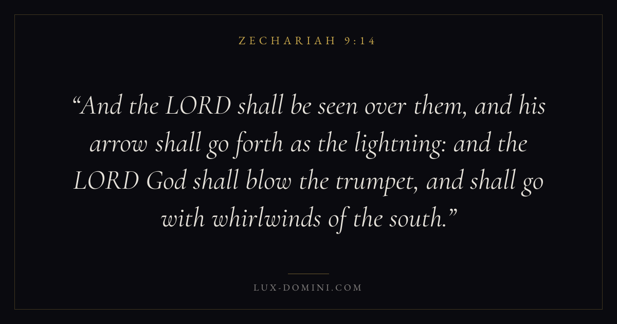And the LORD shall be seen over them, and his arrow shall go forth as the lightning: and the LORD God shall blow the trumpet, and shall go with whirlwinds of the south.