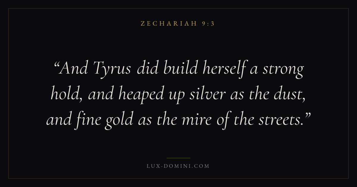 And Tyrus did build herself a strong hold, and heaped up silver as the dust, and fine gold as the mire of the streets.