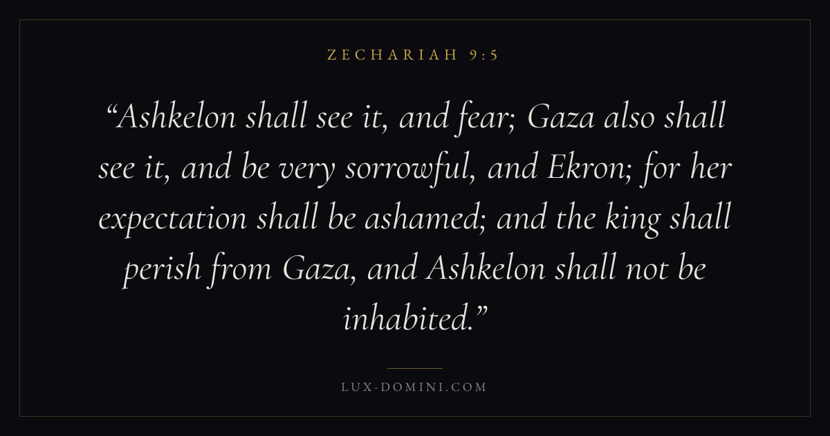 Ashkelon shall see it, and fear; Gaza also shall see it, and be very sorrowful, and Ekron; for her expectation shall be ashamed; and the king shall perish from Gaza, and Ashkelon shall not be inhabited.