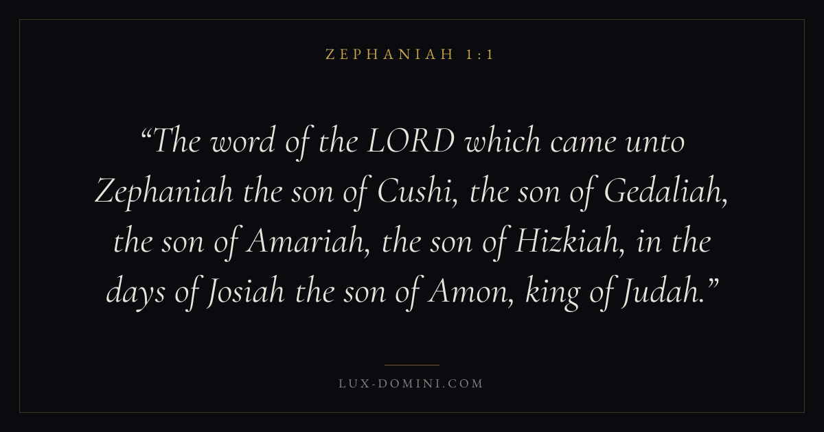 The word of the LORD which came unto Zephaniah the son of Cushi, the son of Gedaliah, the son of Amariah, the son of Hizkiah, in the days of Josiah the son of Amon, king of Judah.