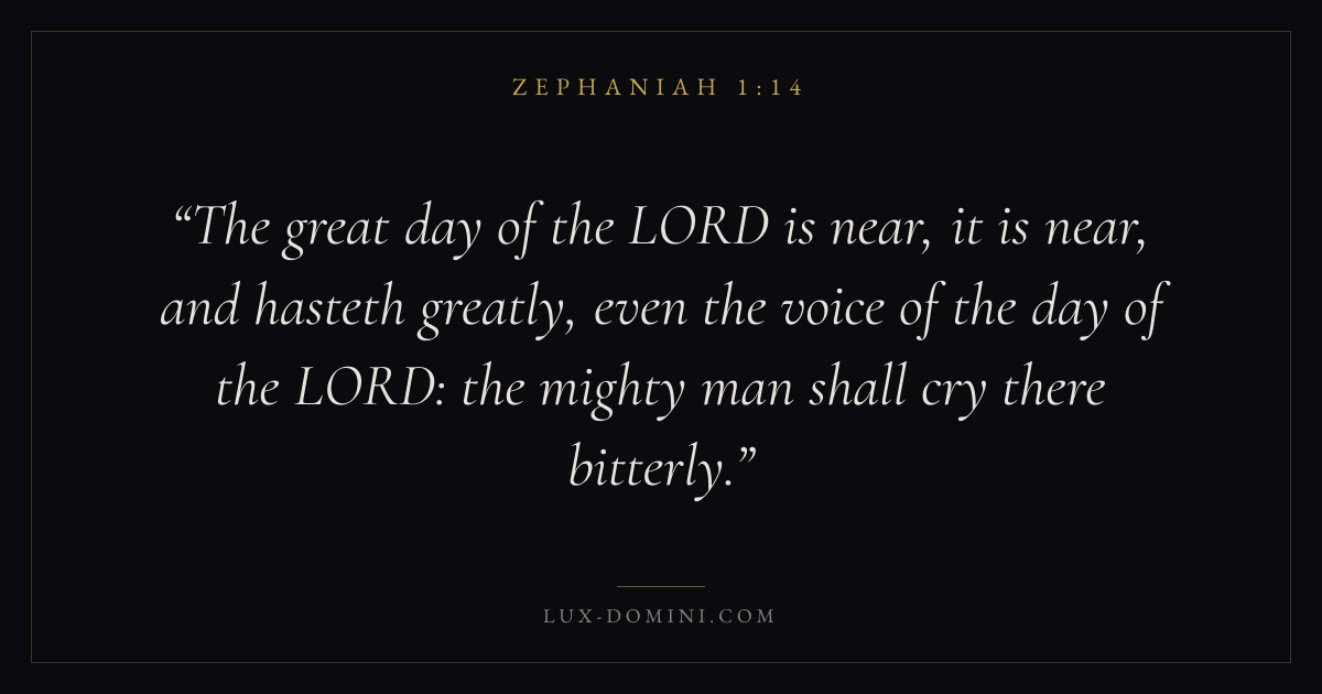 The great day of the LORD is near, it is near, and hasteth greatly, even the voice of the day of the LORD: the mighty man shall cry there bitterly.