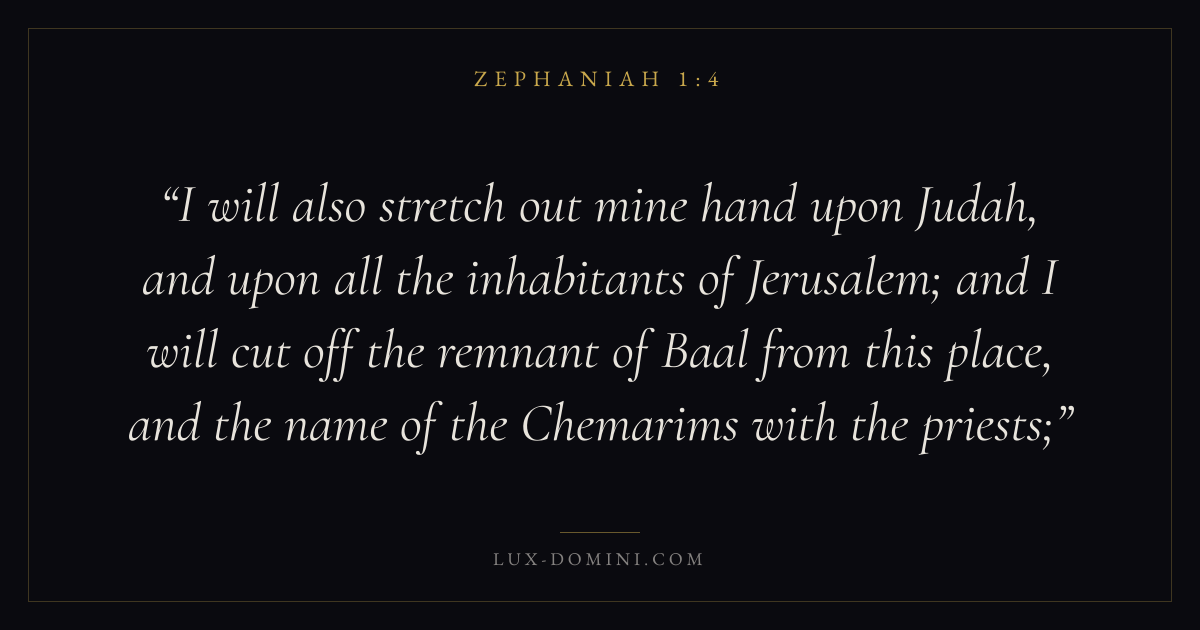 I will also stretch out mine hand upon Judah, and upon all the inhabitants of Jerusalem; and I will cut off the remnant of Baal from this place, and the name of the Chemarims with the priests;
