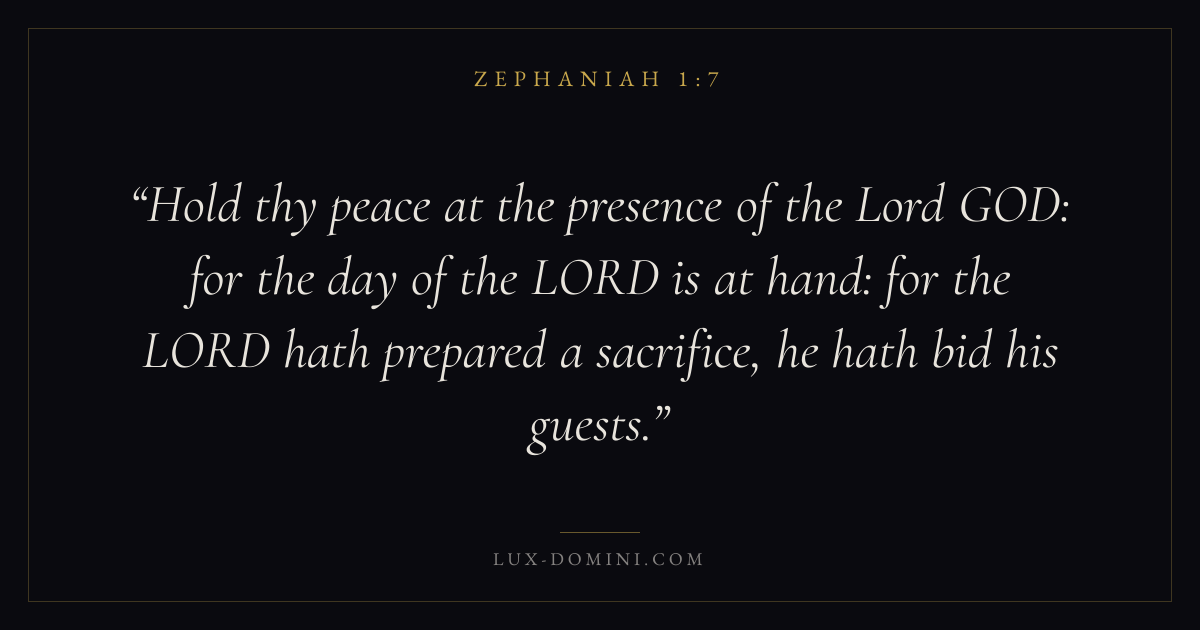 Hold thy peace at the presence of the Lord GOD: for the day of the LORD is at hand: for the LORD hath prepared a sacrifice, he hath bid his guests.