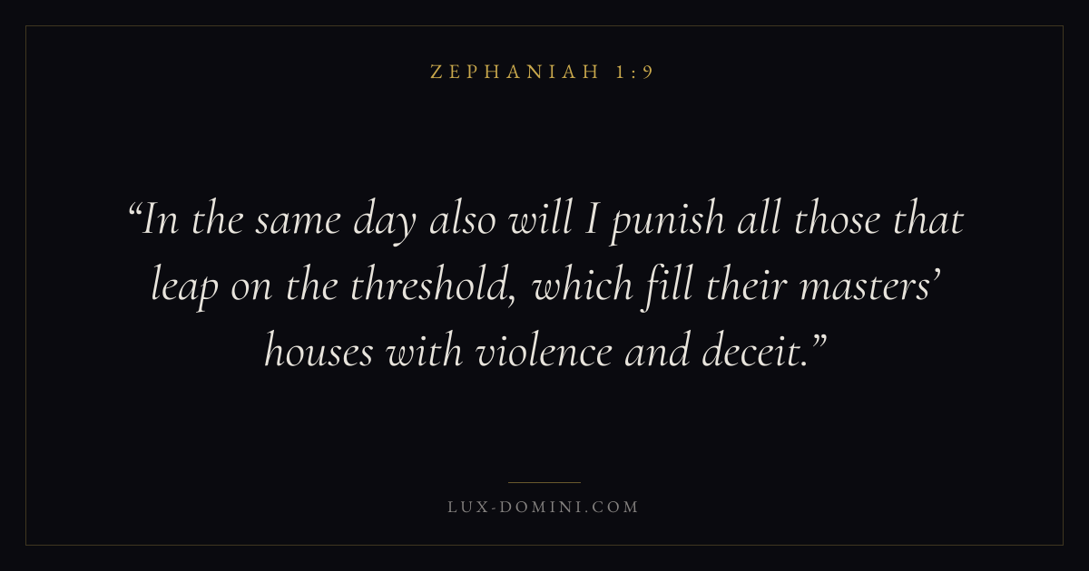 In the same day also will I punish all those that leap on the threshold, which fill their masters’ houses with violence and deceit.