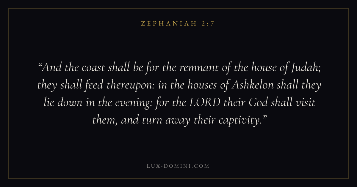 And the coast shall be for the remnant of the house of Judah; they shall feed thereupon: in the houses of Ashkelon shall they lie down in the evening: for the LORD their God shall visit them, and turn away their captivity.