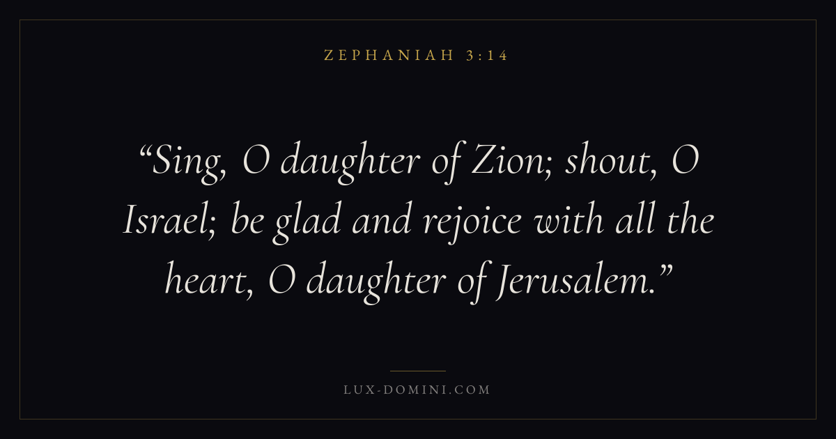 Sing, O daughter of Zion; shout, O Israel; be glad and rejoice with all the heart, O daughter of Jerusalem.