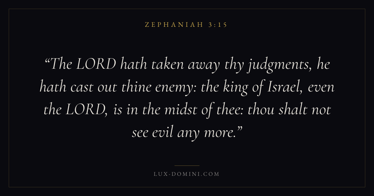 The LORD hath taken away thy judgments, he hath cast out thine enemy: the king of Israel, even the LORD, is in the midst of thee: thou shalt not see evil any more.