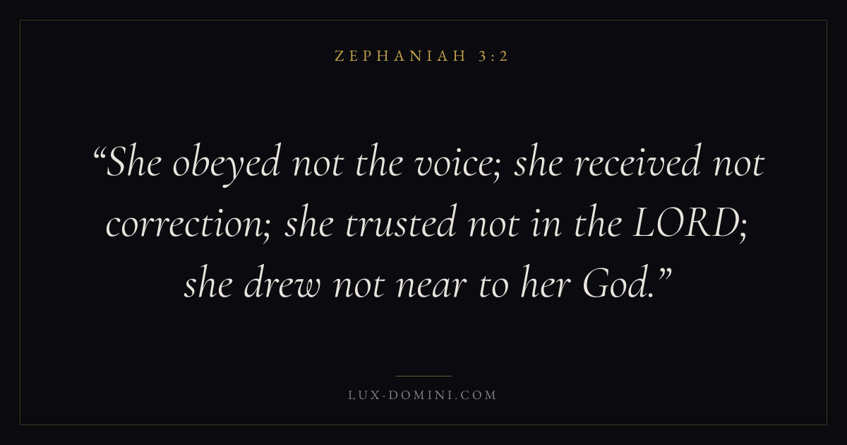 She obeyed not the voice; she received not correction; she trusted not in the LORD; she drew not near to her God.