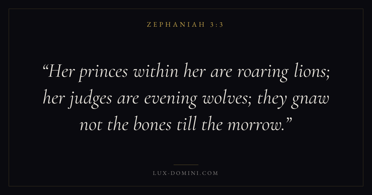Her princes within her are roaring lions; her judges are evening wolves; they gnaw not the bones till the morrow.